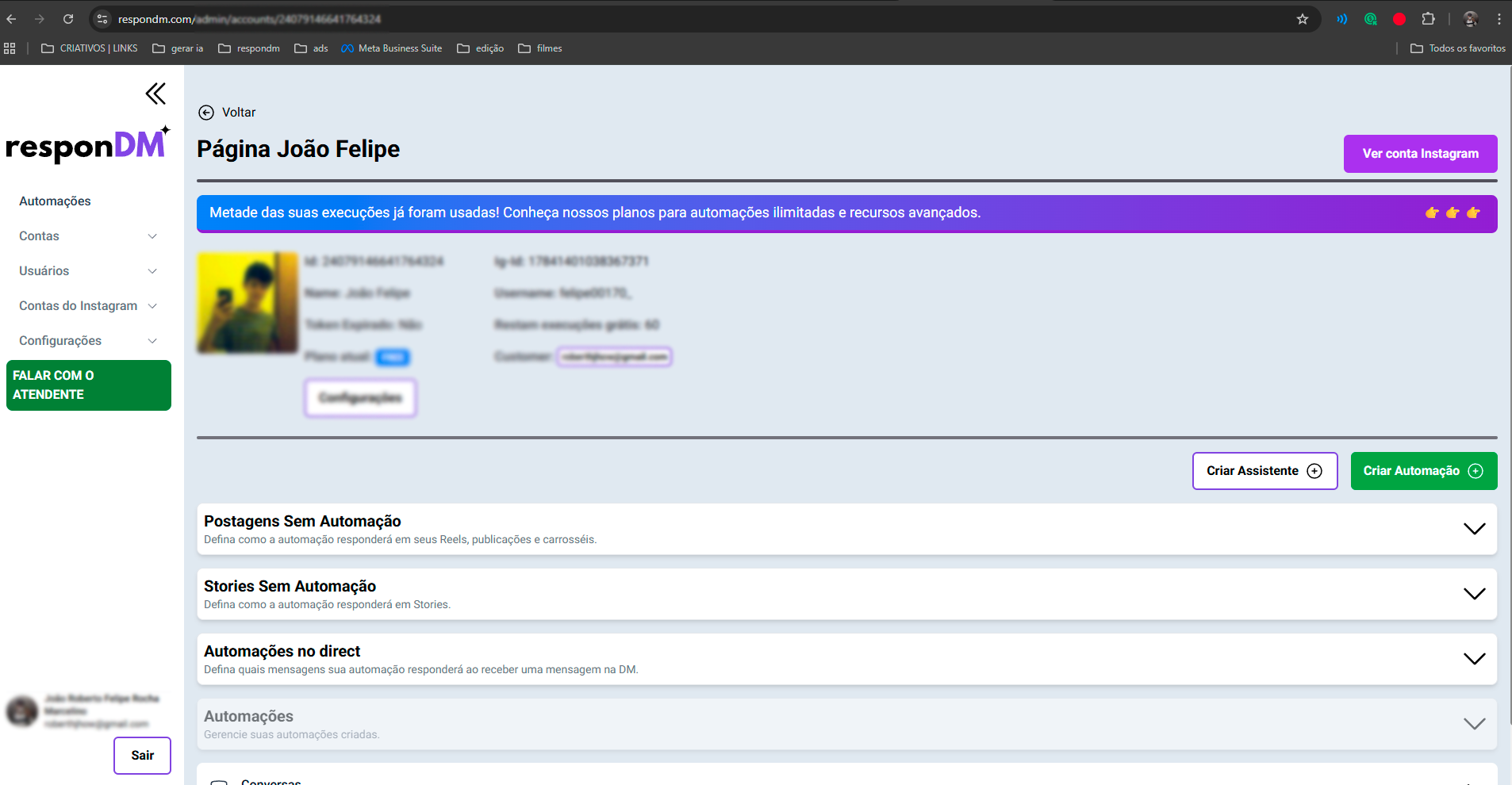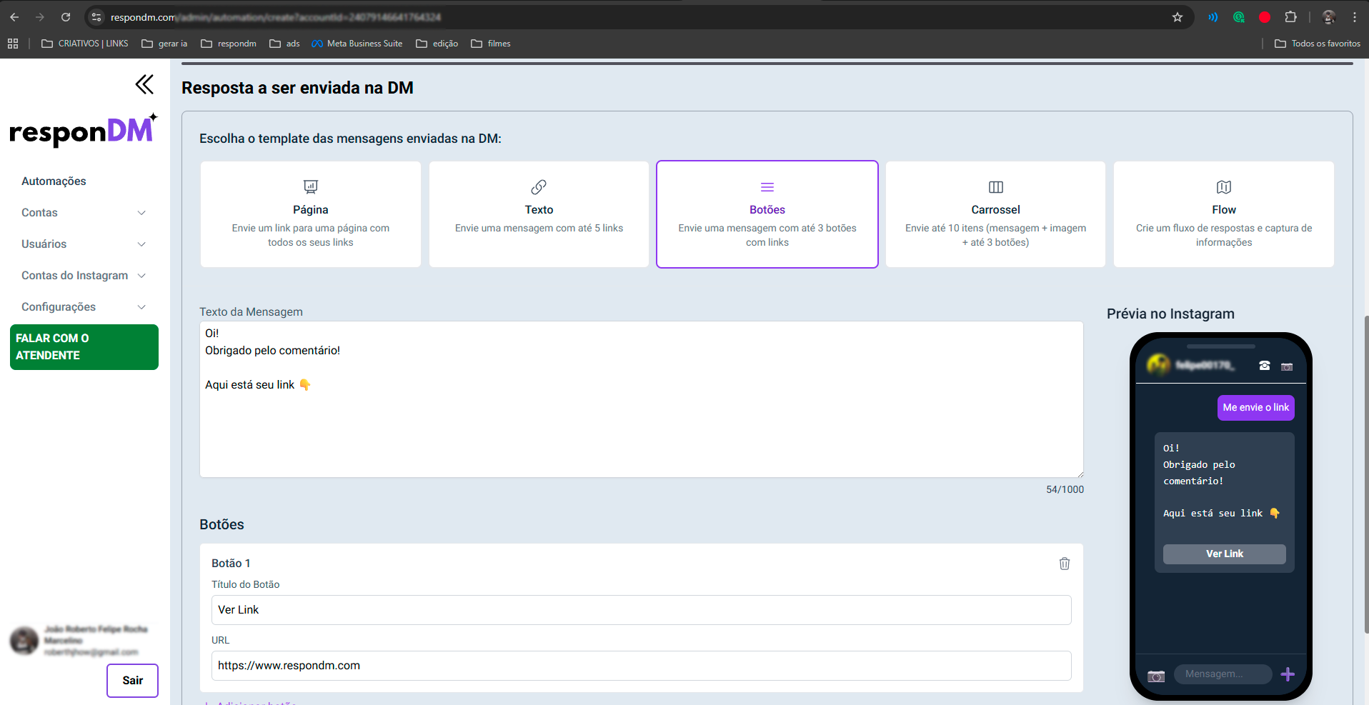OBS.: A ResponDM é integrada à API oficial da Meta, garantindo que sua conta opere com total segurança, sem risco de bloqueios ou atividades suspeitas.