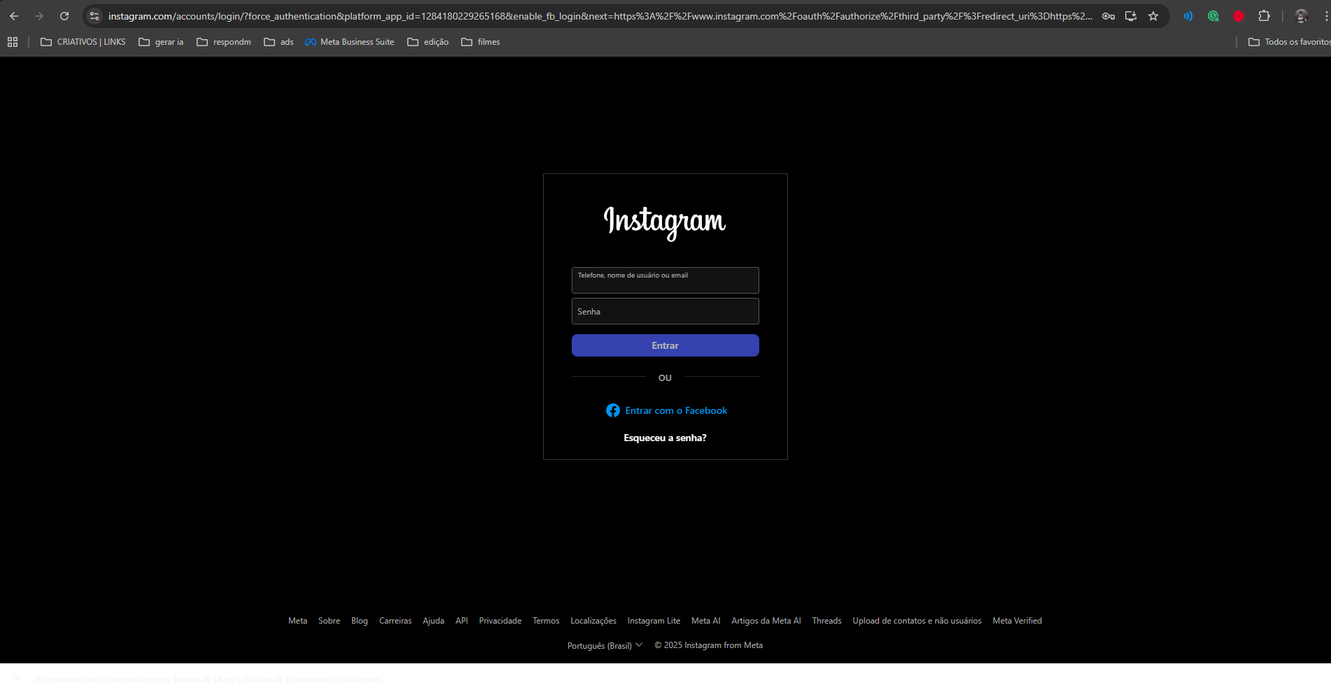 Após clicar no botão "conectar Instagram" dentro da ResponDM, você será redirecionado para realizar o login na página do Instagram. Escreva o seu usuário e senha e clique em "entrar".