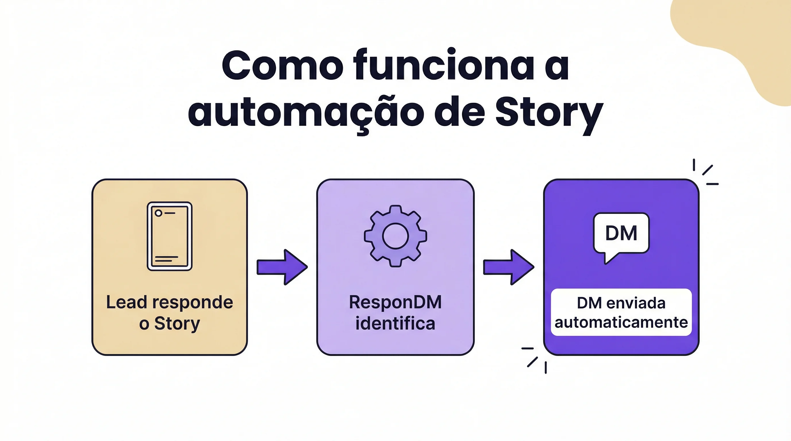 Não há intervenção manual. Não há risco de perder o timing. O lead responde ao Story, e a conversa já começa.