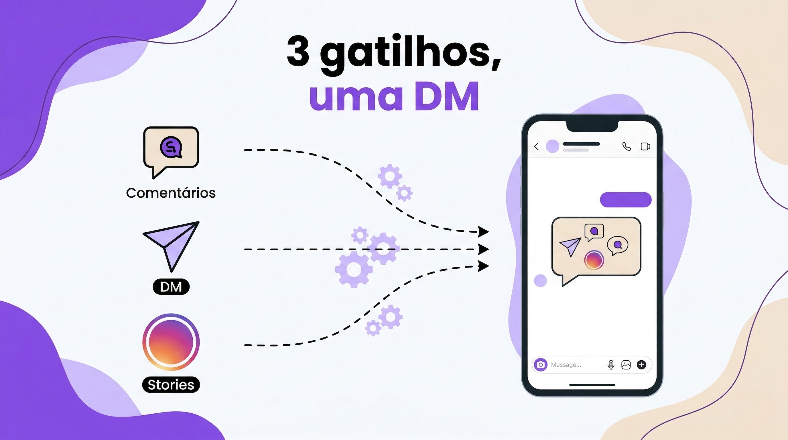Automação de DM: responde automaticamente quando alguém envia uma mensagem direta para você. Funciona como um pré-atendimento automático. Configure gatilhos como "horário", "preço" ou "atendimento" para responder dúvidas frequentes sem precisar estar online.
