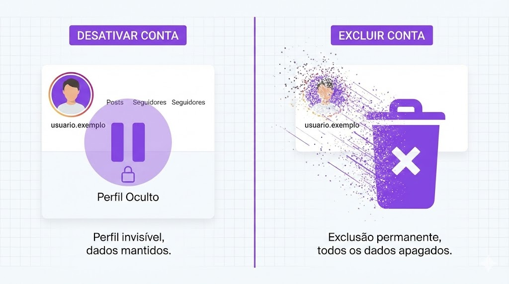 - Desativar: oculta sua conta temporariamente