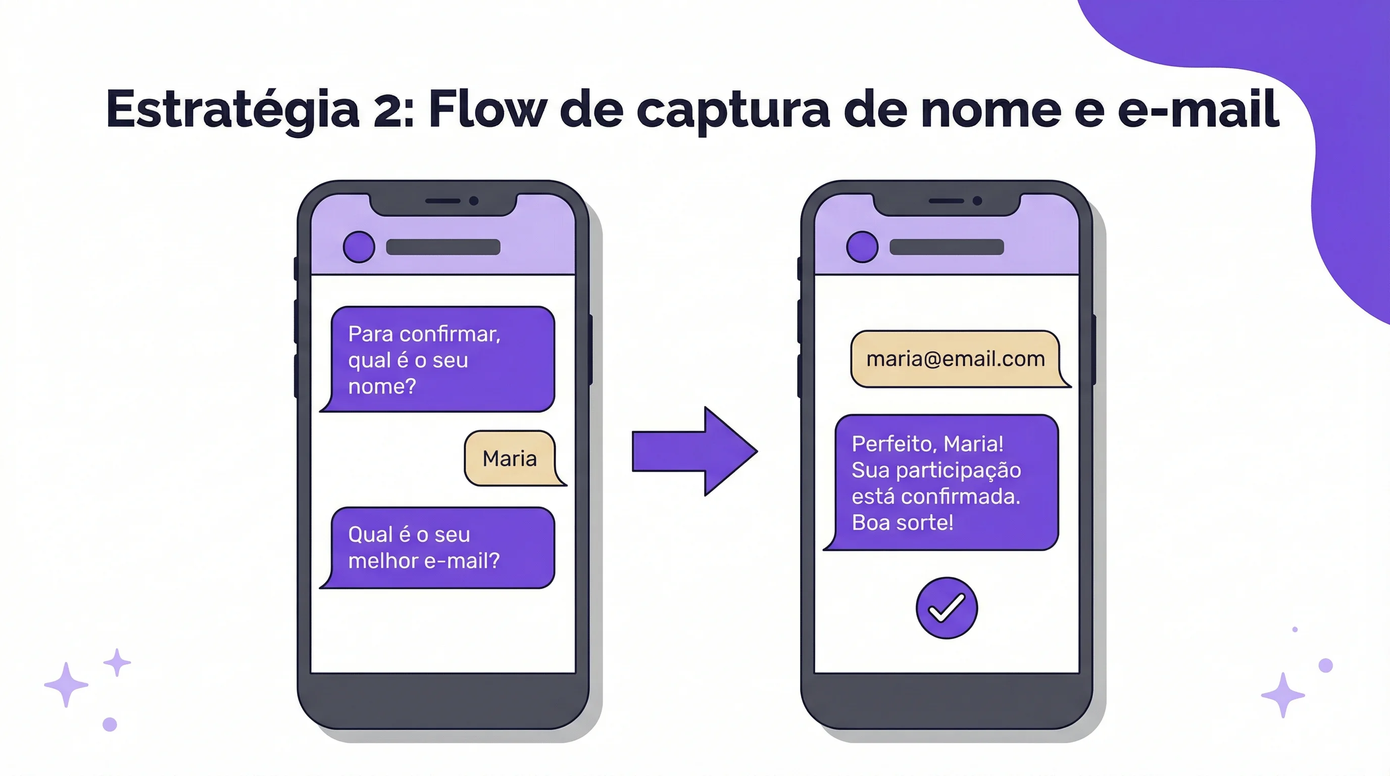 Enquanto a Estratégia 1 foca em crescimento de seguidores, essa foca em algo ainda mais valioso: construir uma base de dados própria com os leads que participaram do sorteio.
